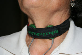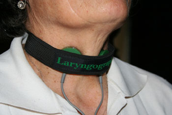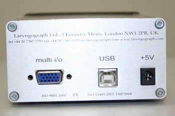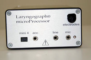 The system, produced by the company Laryngograph Ltd, is a based fundamental frequency (“pitch”) extractor. It captures and plays back speech and the waveform corresponding at the larynks output.