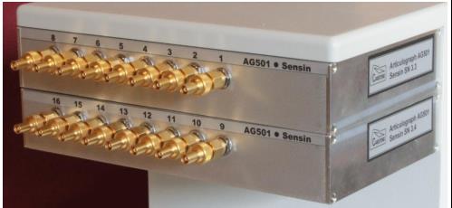 The AG500 system is produced by Carstens Medizinelektronik is used for exploring the acoustics and the mechanics of speech, getting kinematic data on the movements outside and within the mouth, by tracking the movement of up to 9 (+3 for reference)coils within a magnetic field.
